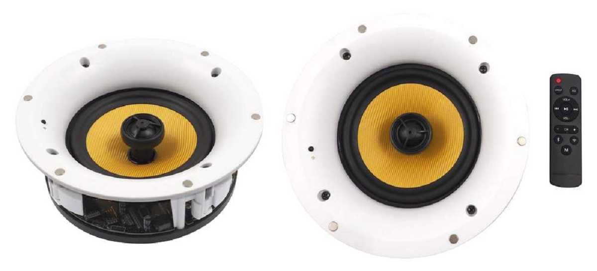 Set dvou stropních 2-pásmových reproduktorů osazených 6,5" basovým reproduktorem s kevlarovou membránou a 1" natáčecím výškovým reproduktorem. Jeden má zabudovaný digitální zesilovač 2x40W RMS a výstup na druhý pasivní reproduktor. Obsahuje připojení Bluetooth pro přehrávání hudby z Vašeho smartphonu, tabletu nebo notebooku a WIFI připojení pro přehrávání internetových rádií a podcastů. Ovládání přehrávání internetových rádií pomocí smartphonu nebo tabletu přes aplikaci MUZO nebo SMART SONIX.