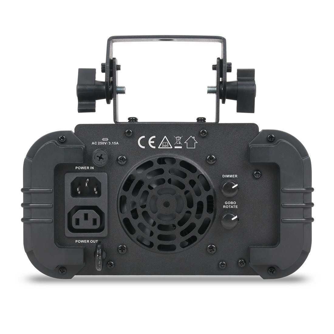 - Součástí jsou 4 vyměnitelné kovové gobo vzory