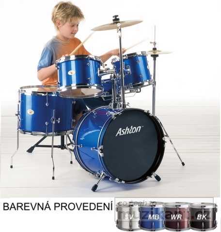 Ashton Joey Drum je skvělá dětská bicí sada, vhodná pro každého malého bubeníka. Je vybavena odolným hardwarem, a nabízí širokou výbavu obsahující vše co do začátků potřebujete. Sada se skládá z basového bubnu s rozměry 16" x 11", dvou tom tomů s rozměry 8" x 7", 10" x 7", jednoho floor tomu s rozměry 13" x 10", a snare bubínku s rozměry 12" x 3,5". Činely jsou v této sadě zastoupeny 12" Crash/Ride a 10" hi-hat. Součástí dodávky jsou i bubenická stolička a jeden pár paliček. Hardware se skládá z bubenické šlapky, činelového stojanu, hi-hat stojanu a stojanu pro snare. Barevné provedení: MB (modrá).
