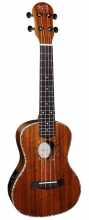 Koncertní elektroakustické ukulele, přední deska koa, záď a luby koa, krk okoume, uzavřené černé mechaniky.