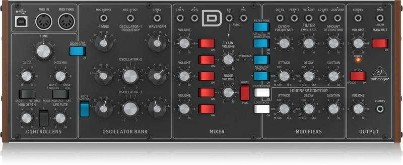 Obvod syntezátoru je 100% analogový a to v celé jeho signálové cestě včetně VCO, VCF a VCA. O zvukovou variabilitu se postará 5 přepínatelných tvarů průběhu oscilátoru, klasický 24 dB ladder filtr s přepínáním mezi high pass a low pass filtrováním.