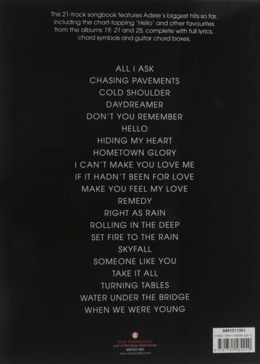 Tento titul Vám přináší výběr 21 jejich největších hitů ze tří alb (19,21 a 25). Všechny skladby jsou v úpravě melodická linka s textem, kytarové akordové značky a klavírní part.