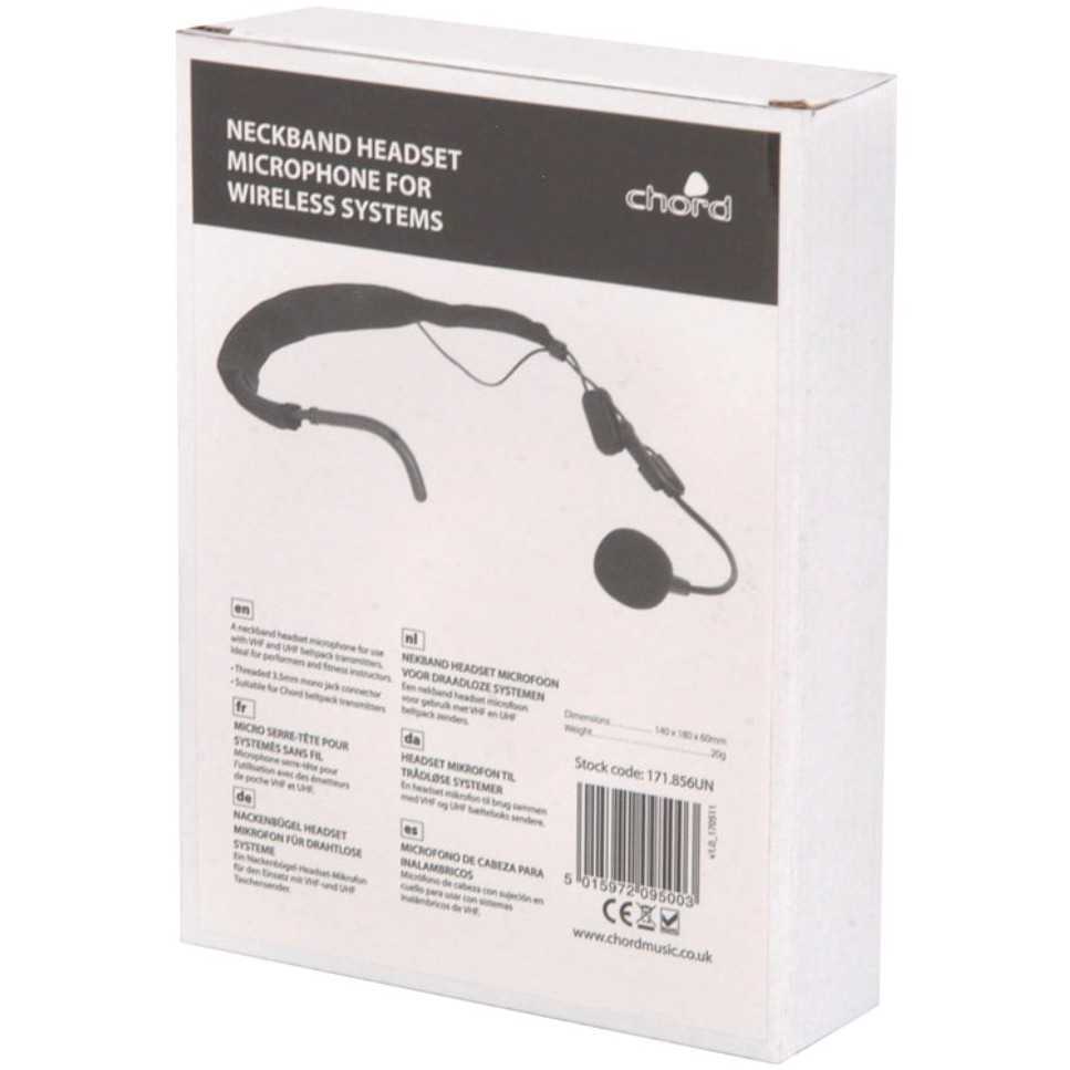 Náhlavní mikrofon pro použití s VHF a UHF kapesními vysílači zn. Chord, Citronic a QTX.