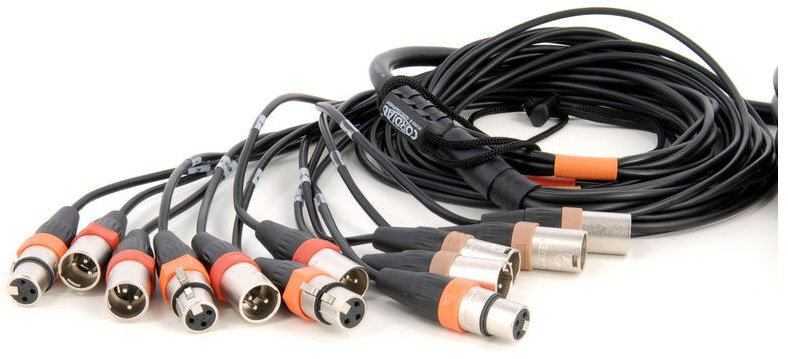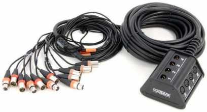 stagebox s mnohožilovým kabelem (párákem), 8 vstupů, 4 výstupy, konektory XLR, délka kabelu 15 m