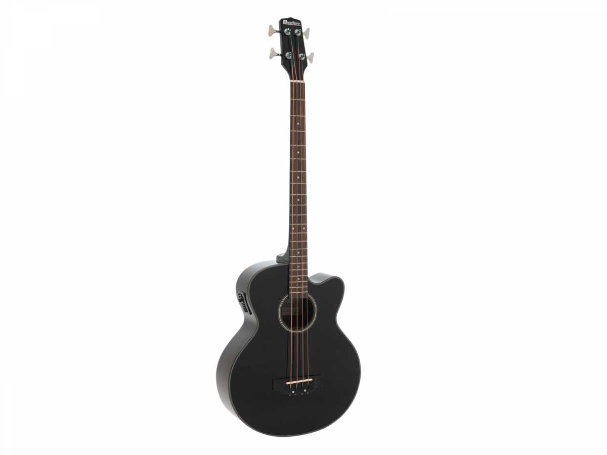 Elektroakustická baskytara s výkrojem, čtyřstrunná. Vrchní deska smrk, spodní deska a luby sapele, menzura 865 mm, krk nato, hmatník ořech, 21 pražců, kobylka javor, černé lemování těla (ABS), chromovaná die-cast mechanika. Aktivní elektronika, kobylkový snímač, ovládání hlasitosti, 3-pásmový ekvalizér pro nastavení basů, středních a vysokých tónů, nastavení presence, indikátor vybití baterie, výstup Jack 6,35 mm. Barva černá lesklá.: Vrchní deska: smrk