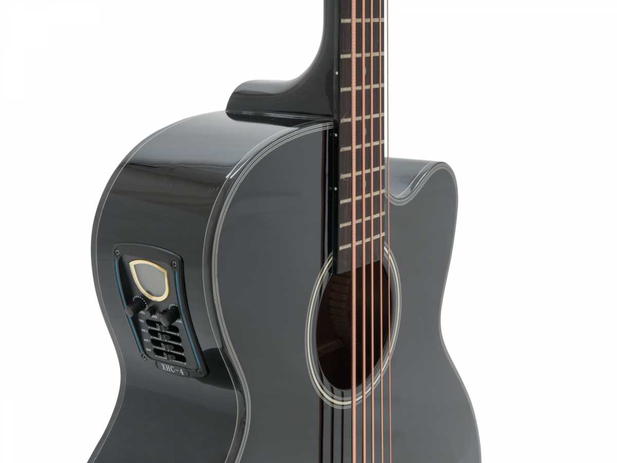 Elektroakustická baskytara s výkrojem, pětistrunná. Vrchní deska smrk, spodní deska a luby sapele, menzura 870 mm, krk nato, hmatník ořech, 21 pražců, nultý pražec 45 mm, kobylka javor, černé lemování těla (ABS), chromovaná die-cast mechanika. Aktivní elektronika, kobylkový snímač, ovládání hlasitosti, 3-pásmový ekvalizér pro nastavení basů, středních a vysokých tónů, nastavení presence, indikátor vybití baterie, výstup Jack 6,35 mm. Barva černá lesklá.: Vrchní deska: smrk