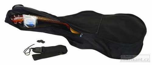 Klasická 3/4 kytara. Vrchní deska lípa, spodní deska a luby lípa, krk gaboon (okoumé), hmatník blackwood, menzura 580 mm, mechanika klasická, niklovaná. Barva přírodní lesklá.: Vrchní deska: lípa