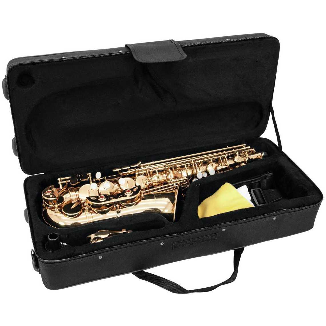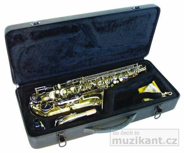 Es alt saxofon, fis klapka, přírodní lak, lehké nylonové pouzdro s měkce vyloženým vnitřkem.: Materiál: mosaz