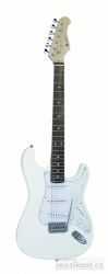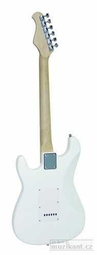 Elektrická kytara typu Strat. Tělo jasan, šroubovaný krk javor, menzura 648 mm, hmatník blackwood, 22 pražců, kobylka klasické tremolo typu Strat, chromovaná mechanika, 3x jednocívkový snímač (single coil), 1x ovládání hlasitosti, 2x ovládání tónu, 5-ti polohový přepínač. Barva bílá.: Tělo: jasan