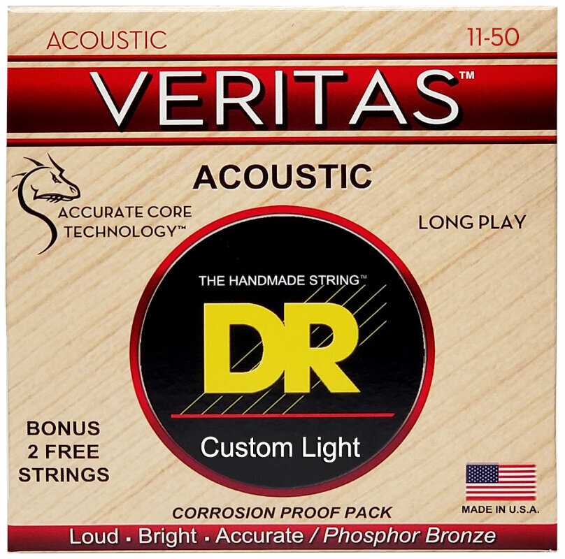 Struny pro akustickou kytaru VERITAS™ si zachovávají svůj tón, stabilitu ladění a intonaci díky technologii Coated Core Technology™, což je proces potahování kulatého jádra drátu, který uzamyká obal drátu na místě a prodlužuje životnost struny tím, že chrání jádro před korozí. Ovinovací drát z fosforového bronzu poskytuje tradičně jasný tón a přirozený pocit. Všechny sady VERITAS™ obsahují jak standardní hladké ocelové struny, tak struny Xenon Power-Plain™, které mají zvýšený výkon, aby se vyrovnaly vinutým strunám.