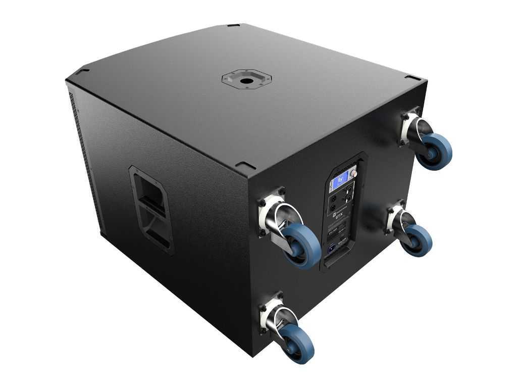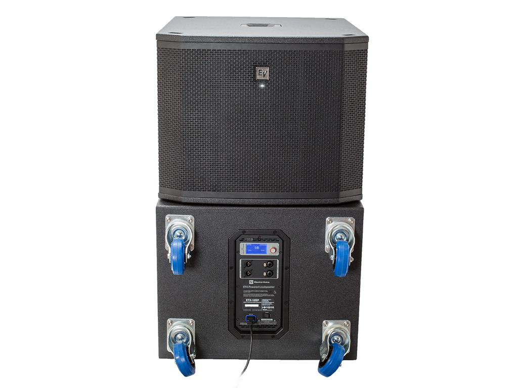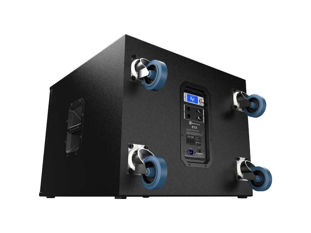 Profesionální aktivní subwoofer, zesilovač třídy "D", 18" basový reproduktor, dva vstupy a dva výstupy (možnost provozu se dvěma satelity), kombo konektory Neutrik, DSP procesor s displayem (nastavení crossoveru, EQ, limiteru, provoz dvou ETX-18SP v "kardio" režimu), frekvenční rozsah 28Hz - 180kHz, max. SPL 135dB, RMS výkon 900W, materiál 18mm - 13-ti vrstvá březová překližka se speciálním lakem (EV coat), hnízdo pro rozpěrnou tyč (zasunovací i šroubovací), odnímatelná kolečka.