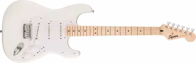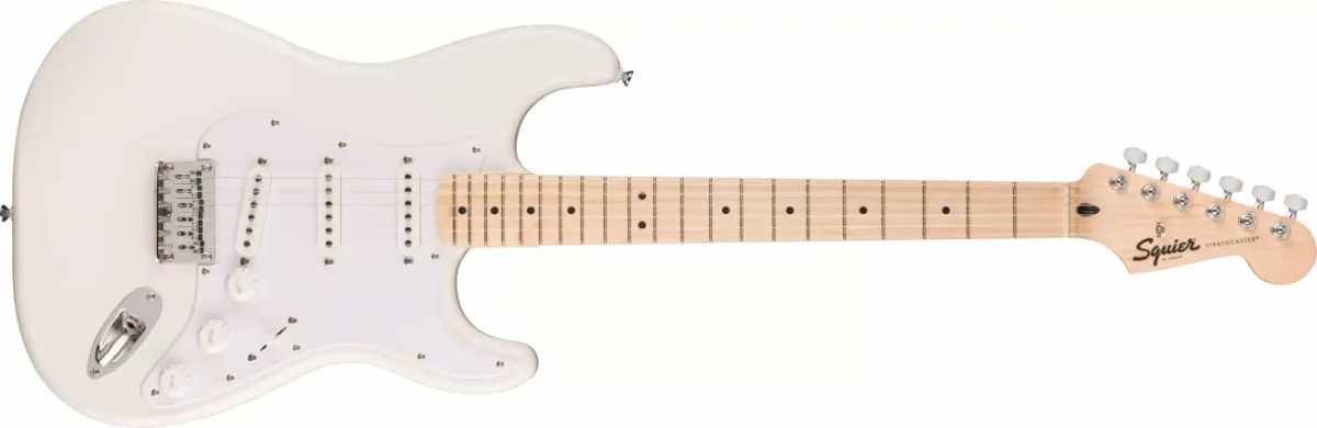 Fender Squier Sonic Strat HT MN WPG AWTElektrická kytara z řady Squier Sonic, která nahradila velice populární sérii Bullet. Jedná se o kytaru, která je perfektním startovacím nástrojem pro každého začínajícího muzikanta. Squier Sonic nabízí kvalitní nástroje za více než příznivou cenu.Tělo kytary ve tvaru klasického Stratocasteru je z topolového dřeva. Šroubovaný javorový krk s javorovým hmatníkem je osazen 21 medium pražci. Šířka nultého pražce je 42 mm a menzura je 648 mm. Krk má profil písmene C. Ladící mechaniky i pevná kobylka (Hardtail – HT) jsou v chromovaném provedení.O ozvučení se stará trojice keramických snímačů v kombinaci S-S-S, což je nejklasičtější možné zapojení u kytar Stratocaster.Nadčasový design kytary je doplněn lesklou povrchovou úpravou v barevném provedení Arctic White (bílá) s bílým pickguardem.