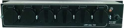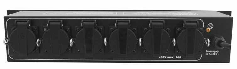 Power distributor with switching panel with 6 safety socketsFully cabled housing with 6 safety sockets