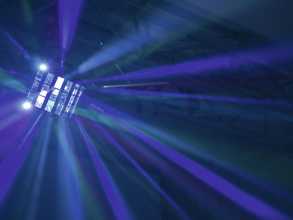 LED paprskový světelný efekt osazený 4x 3W QCL (RGBW) LED dioadami a 16x0,5W LED bílými SMD čipy. Efekt promítá svazky barevných paprsků do prostoru z 24-ti čoček usazených ve třech řadách. Funkce statických barev, RGBAW míchání barev, stmívání, Strobo efekt. Ovládání pomocí DMX signálu (1/4 kanálů), funkce Master/Slave, zabudovaný mikrofon pro ovládání hudbou, nebo dálkového ovladače, funkce Fuzzy sound.: Napájení: 230V AC, 50 Hz ~