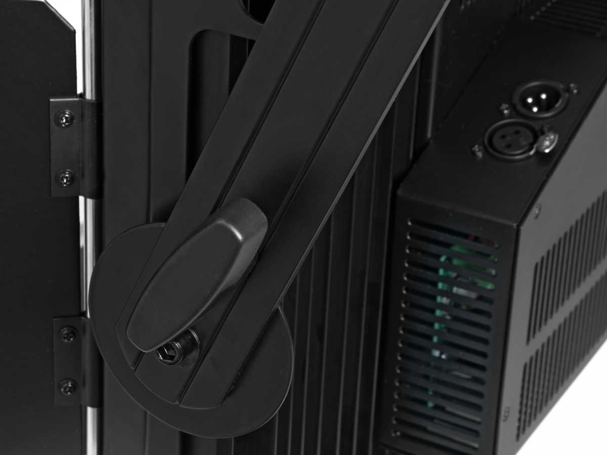 Výkonný LED reflektor osazený 480 QCL 0,5 W SMD diodami (RGBW). Kvalitní světlo vhodné pro fotografování, filmové, divadelní, scénické nebo například veletržní osvětlení. Poskytuje homogenní a jasné světlo bez blikání projekce. 4 odklápěcí klapky pro směřování světelného kuželu, ochranu publika při svícení i bezpečný transport reflektoru. Funkce stmívání (4 módy rychlosti stmívání), možnost ručního nastavení intenzity svícení (jasu), Strobo efekt, CRI (index podání barev). Ovládání pomocí DMX signálu (4 až 6 kanály) nebo manuálně pomocí řídícího panelu s LED displejem, funkce Master/Slave. Robustní provedení, dodáváno včetně montážní konzole s možností nastavení sklonu reflektoru. Možnost sériového napájení až 8 zařízení. Madlo pro snadnou manipulaci.: Napájení: 100-240V AC, 50/60Hz