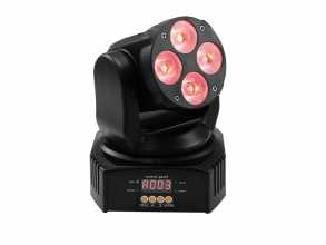 Kompaktní pohyblivá LED hlavice osazená čtyřmi výkonnými 10W HCL LED diodami (RGBAW+UV, 6-v-1). Kompaktní provedení, velmi nízká hmotnost. Plynulé RGBAW+UV míchání barev, funkce celkového stmívání a Strobo efekt s nastavitelnou frekvencí záblesků. Přesné polohování PAN (0 až 540) a TILT (0 až 220) díky 16-bit. převodníku. Ovládání zvukem pomocí zabudovaného mikrofonu s nastavitelnou citlivostí nebo DMX signálem (16 nebo 18 řídících kanálů), automatický provozní režim, funkce Master/Slave, interní barevné a pohybové programy. Adresování DMX a nastavení základních provozních režimů pomocí ovládacího panelu s LED displejem. Robustní kovová základna pro montáž na strop nebo na stěnu. Spínaný napájecí zdroj pro provoz mezi 100 a 240 V. Světelný efekt vhodný pro mobilní aplikace i pevné instalace.: Napájení: 100-240V AC, 50/60 Hz