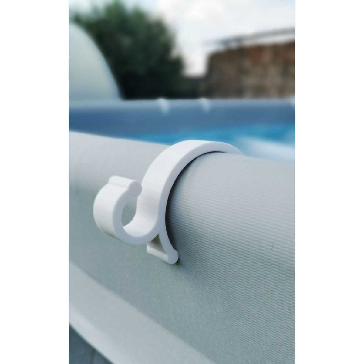 univerzální držák na bazén s 1 háčkem, vhodný pro bazény Intex Frame a Bestway s konstrukcí, uchycení na trubku bazénu průměru 60 mm, barva bílá