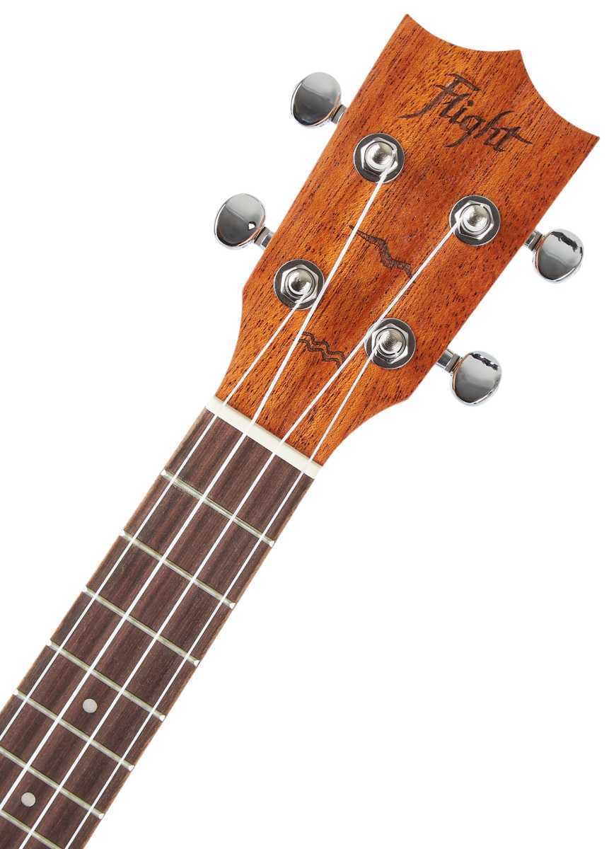 Koncertní ukulele od firmy Flight má přední desku z mahagonu zdobenou laserem vypálenou rozetou, zadní deska a luby jsou také mahagonové. Logo výrobce a ozdobná grafika je opět vypálená laserem. Krk nástroje je z Afrického dřeva Okouma, je osazen 17-ti pražci a je opatřen palisandrovým hmatníkem. Ze stejného materiálu je vyrobena i kobylka. K ladění nástroje slouží přesná olejová mechanika.Součástí nástroje je i krásný obal s 5mm silným polstrováním.Řada Designer Series značky Flight nabízí cenově dostupné modely ukulelí s tradičním přírodním/designem dřev vhodné pro začínající ukulelisty a ukulelistky.