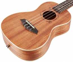 Tělo tohoto koncertního ukulele je zhotoveno z laminovaného mahagonu. Krk a hmatník nástroje jsou vyrobeny z afrického okoumé a ořechu, což je rovněž poměrně často používaná kombinace dřev. Struny jsou přes nultý a sedlový pražec z kosti ukotveny v chromovaných ladicích mechanikách kytarového typu (Die-Cast Geared) a ořechové kobylce. Úspornější design zpestřuje v případě modelů z řady Designer Series rozeta v podobě dekorativní laserové rytiny.