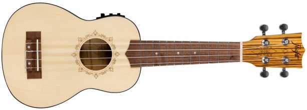 Tělo tohoto elektroakustického sopránového ukulele je složené z přední desky z laminovaného smrku a zadní desky a lubů z laminovaného exotického zebrana (zebrawood). Krk a hmatník nástroje jsou vyrobeny z afrického okoumé a ořechu, což je rovněž poměrně často používaná kombinace dřev. Struny jsou přes nultý a sedlový pražec z kosti ukotveny v chromovaných ladicích mechanikách kytarového typu (Die-Cast Geared) a ořechové kobylce. Úspornější design zpestřuje v případě modelů z řady Designer Series rozeta v podobě dekorativní laserové rytiny.