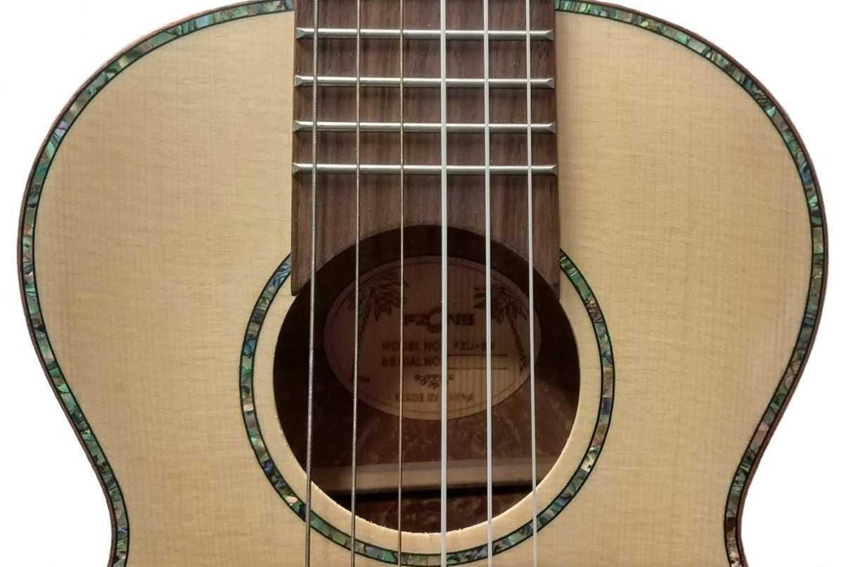 FZone FZU-64 je takzvané guitalele, tedy kombinace ukulele a menší kytary se šesti strunami. Je to nástroj s masivní deskou ze smrku ve špičkové kvalitě. Luby a záď nástroje jsou vyrobeny z javoru, upraveného technikou špaltování nebo někdy označovanou jako mramorování. Hmatník a kobylka jsou ze dřeva Sonokeling, neboli indického palisandru. Hlava nástroje je vykládána také sonokelingem. Ladící mechaniky jsou klasické, otevřené Grover s perleťovými kolíky. Nástroj je osazen strunami Aquila.