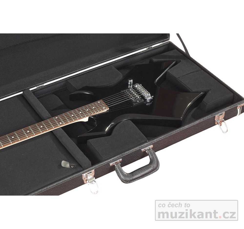 Luxusní, laminovaný, dřevěný kufr na elektrickou kytaru-extrémní tvary např. Flying V's®, Explorers®, Jackson's® and BC Rich®