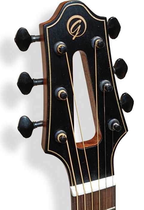 Nástroj rovněž lahodí oku díky designové hlavě s výřezem v kombinaci s černými vintage mechanikami, rovněž jako díky působivé rozetě a decentnímu světlému lemování.