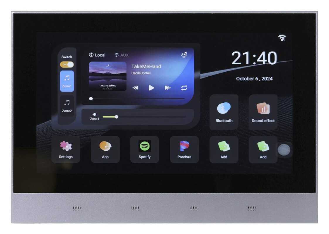 2-zónový stěnový USB/microSD/MP3 přehrávač s velkým 7" barevným grafickým dotykovým displejem, s OS Andoid 11 a vestavěným 8-kanálovým digitálním zesilovačem o výkonu 8x 20W. Přehrávač obsahuje Wifi/LAN připojení pro internetové rádio a streamovací služby a Bluetooth připojení pro bezdrátové AUX vstup, AUX výstup a výstup pro subwoofer. Přehrávač umožňuje připojení 8-16 ks reproduktorů a je ideální pro ozvučení rodinného domu nebo menších komerčních prostor. Montuje se do montážní krabičky (která je součástí balení) do zdi.