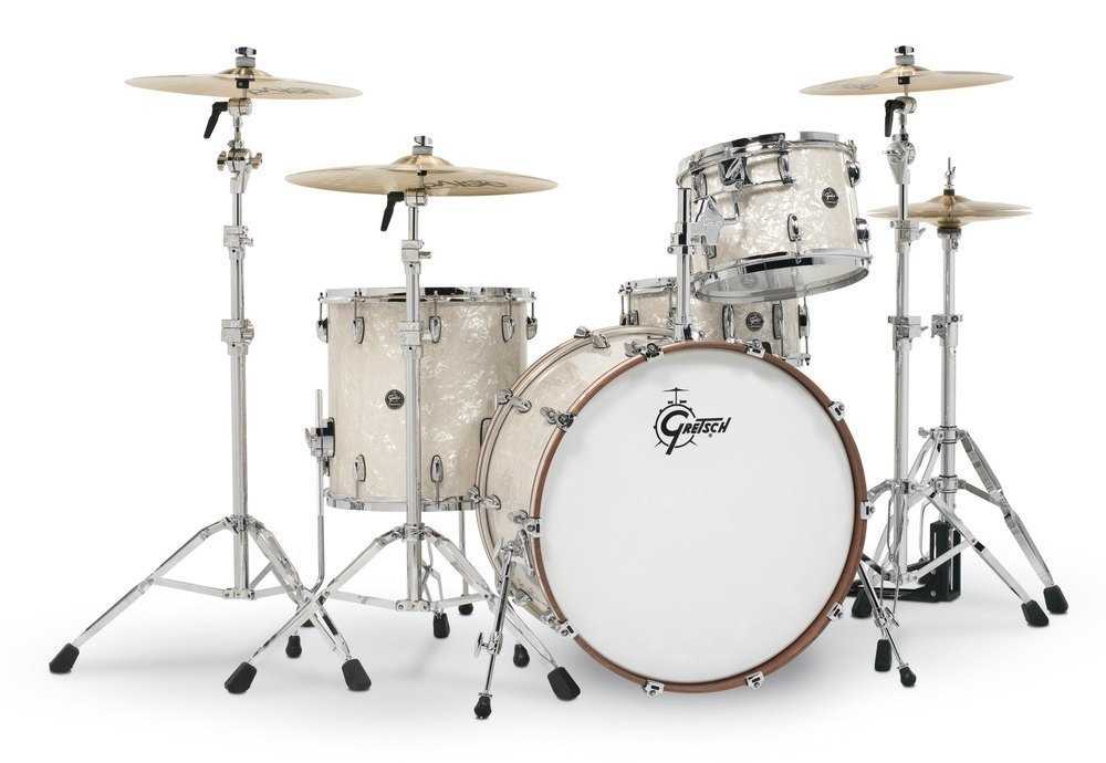 7-vrstvý javor;30° hranění;Gretsch 'Silver Sealer' vnitřní vrstva korpusu;Gretsch '302' napínací obruč;'Low Profile' závěsný systém pro Tom;Bass Drums s kulatou Gretsch Tom rozetou;Chromová hardware;Remo blány;Sada korpusů;12" x 8" TT, 16" x 14" FT, 22" x 18" BD;Včetně jednoho uchycení pro Tom;RN2-E823;Bez činelů;