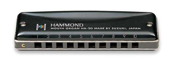 Suzuki Hammond HA-20 je luxusní, diatonická foukací harmonika. Je to designová verze nejpopulárnějšího profesionálního nástroje v sortimentu firmy Suzuki Promaster MR-350. Nabízí melodický a jasný tón. Má 10 kanálků, a vyrábí se v těchto laděních: C, G, A, D, E, F, Bb, B, F#, Eb, Ab, Db, Hi G a Low F. Rozměry nástroje jsou 100 x 27 x 20 mm a její hmotnost je 91 g (126 g včetně pouzdra). Má velmi odolný, chromovaný plechový kryt v černé barvě, a masivní hliníkové tělo, jazýčky jsou fosforbronzové. Součástí dodváky je i polstrované plastové pouzdro. Tento nástroj můžete použít v mnoha různých hudebních žánrech včetně blues, folku, rocku či country.