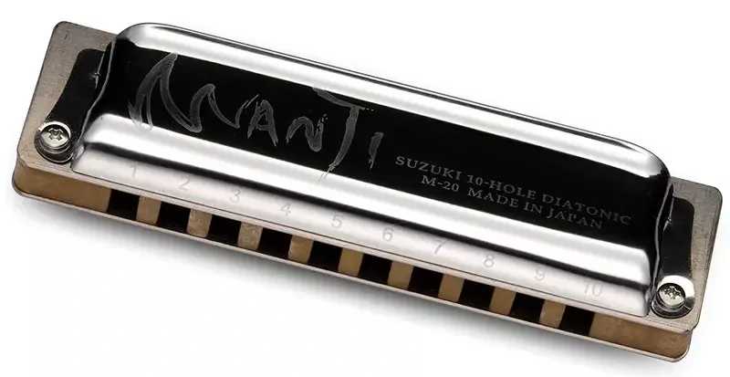Diatonická foukací harmonika Suzuki Manji M-20 s výjimečně silným a čistý zvukem a snadným ohýbáním tónů. Vyznačuje se vynikající kvalitou a provedením. Revoluční je její kompozitový hřeben, který simuluje zvukové vlastnosti dřeva ale netrpí vlhkostí. Tento model je pojmenován po zakladateli značky Suzuki. Pan Manji Suzuki, kterému je již přes 80 let, se stále naplno věnuje své firmě, výrobě a vývoji harmonik. To, že propůjčil tomuto modelu své jméno značí, že si plně stojí za jeho vývojem a je spokojen s výsledkem.