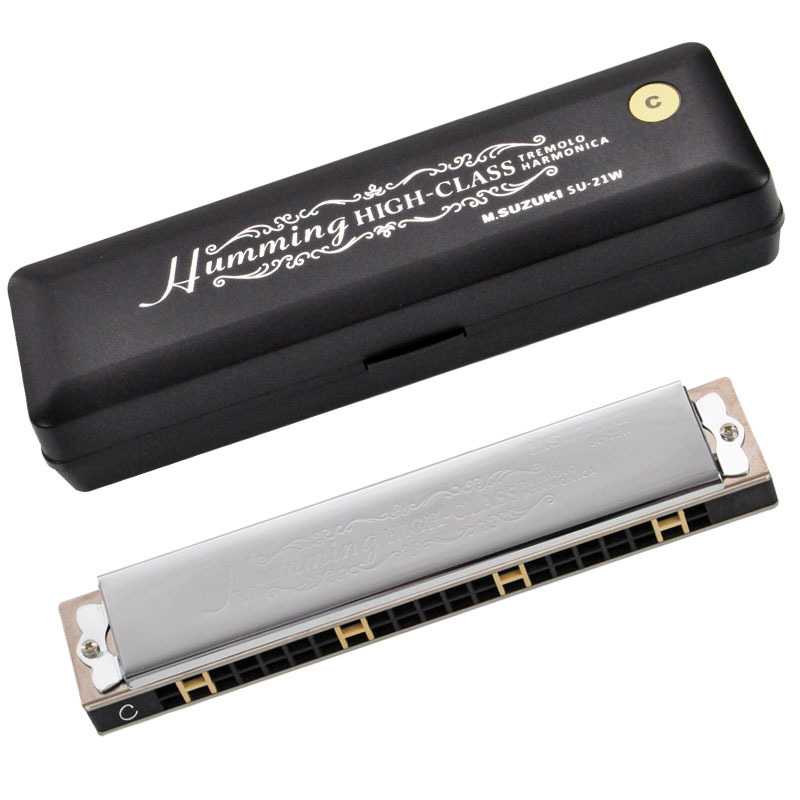 Suzuki SU-21 W High Class je špičková, poloprofesionální tremolo harmonika Suzuki, která je skvělým příkladem nástroje s moderní technologií nabízející zvuk jako "ze staré školy". Skvělá pro gospely nebo blues. Je vyrobena s plastovým hřebenem s ocelovým krytem a laserem laděnými plechovými jazýčky. Velikost harmoniky je 165 x 30 x 25 mm a její hmotnost je 150 g. Součástí dodávky je plastové polstrované pouzdro a čistící hadřík.