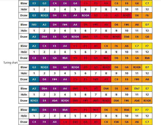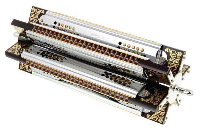 Korpus harmonik je vyroben z javorového dřeva. Dvojitý lak zabraňuje absorpci vlhkosti a následnému rozpínaní dřeva. Každá z harmonik dále disponuje kryty z nerezové oceli, osmačtyřiceti mosaznými hlásky, mosaznými plátky o tloušťce 0,9 mm a rozsahem tří a půl oktávy. Používá Richter ladění.