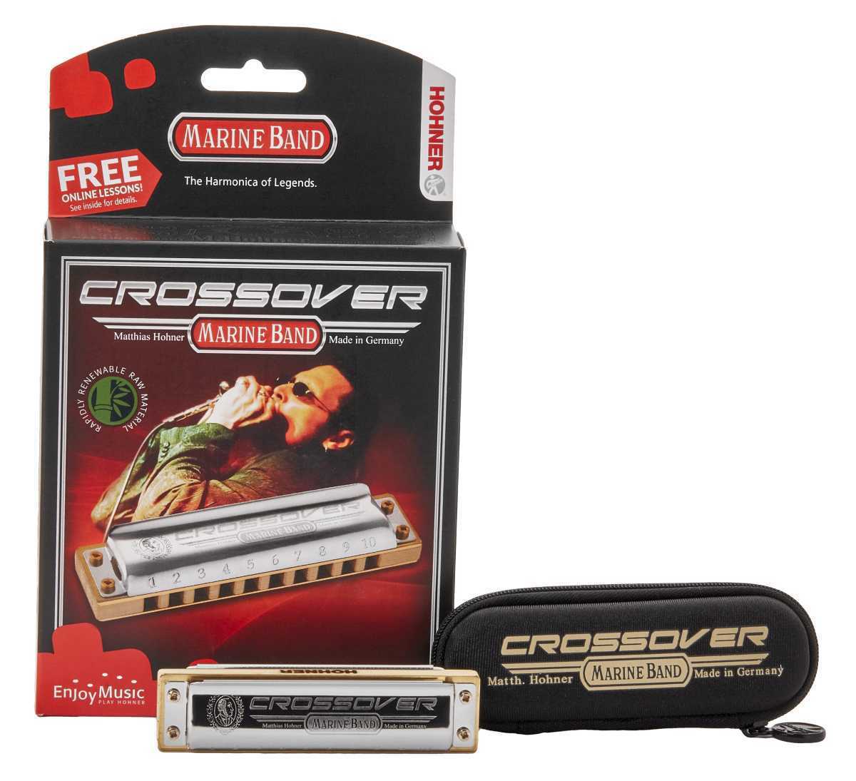 Model Marine band Crossover je moderně pojatá foukací harmonika vycházející vstříc požadavkům současných profesionálních hráčů blues a všech příbuzných nebo navazujících stylů (jazz, rock, soul, funk). Nástroj je ideální k hraní melodií po jednotlivých tónech i k akordovým doprovodům – ať už akusticky, nebo s mikrofonním ozvučením. Jeho patentovaný, třikrát lakovaný, korpus z laminovaného bambusu je zcela voděvzdorný a vzduchotěsný, což zaručuje jeho stálost a opravdu jasný, znělý, tón. Harmonika dále disponuje zpevněnými kryty z nerezové oceli s bočními otvory a otevřenou zadní stranou, zaoblenými hranami pro větší herní pohodlí, dvaceti mosaznými hlásky, mosaznými plátky o tloušťce 0,9 mm a rozsahem tří oktáv. Součástí je též neoprenový obal se zipem, který chrání harmoniku před prachem a umožňuje odvádět vlhkost.