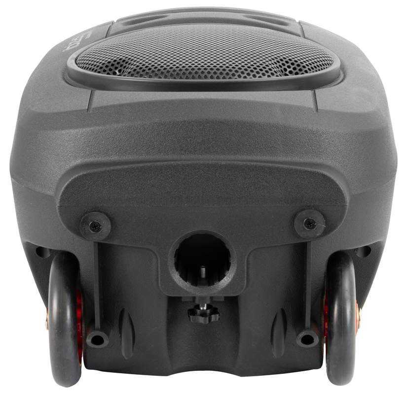 8" přenosný PA systém určený pro mobilní aplikace v terénu s 12V vestavěným akumulátorem. Výkon 50W. Obsahuje 1x ruční bezdrátový UHF mikrofon, 1 ruční kabelový mikrofon. Má vstupy pro dva kabelové mikrofony 1x LINE vstup a LINE mix výstup. Má vestavěný MP3 přehrávač tunerem a dálkovým ovládáním Bluetooth obsahuje funkcí TWS pro možnost připojení dvou reprosoustav na jeden zdroj hudby. Také má 2 konference, školení a všude tam, kde je potřeba reprodukovat hudbu a řeč.