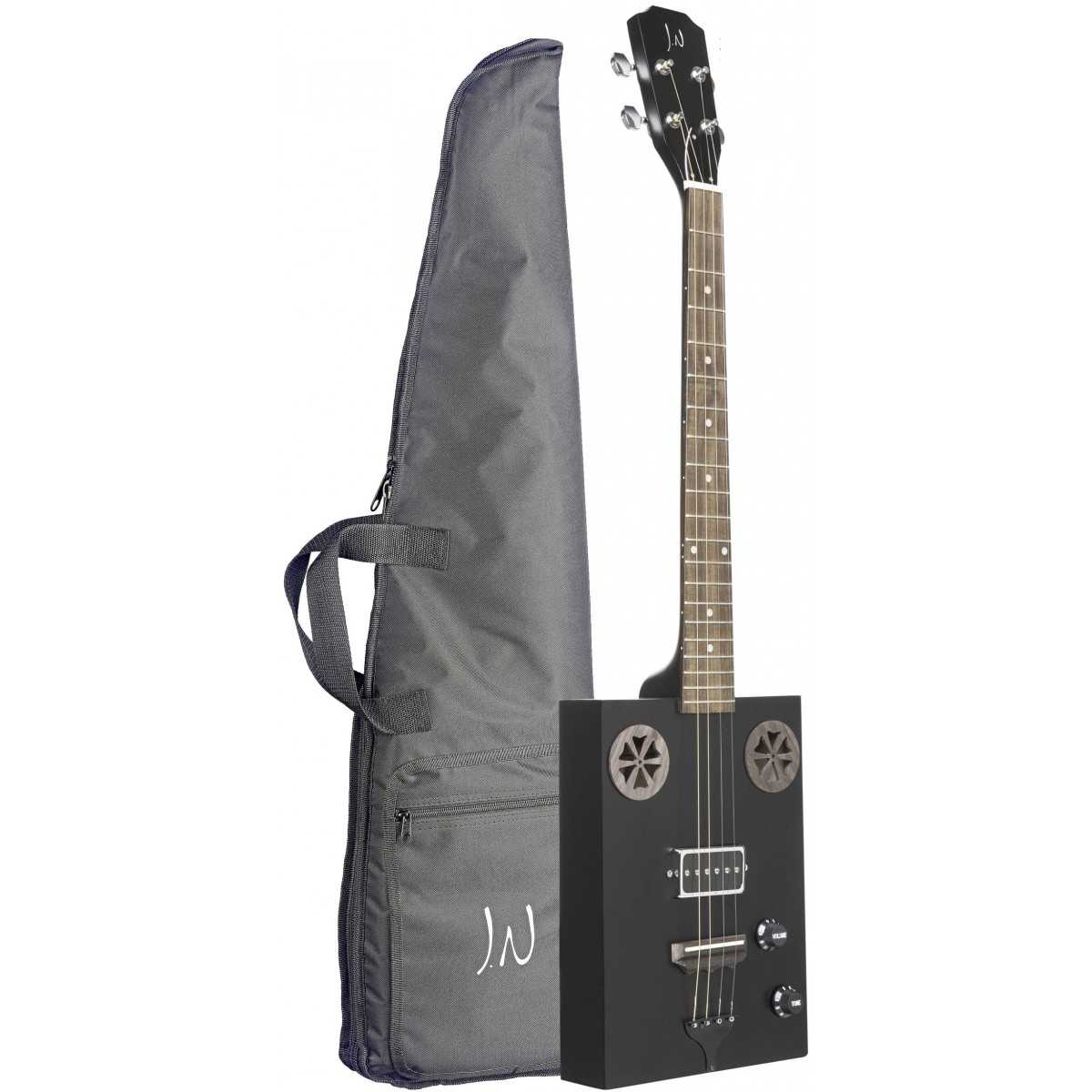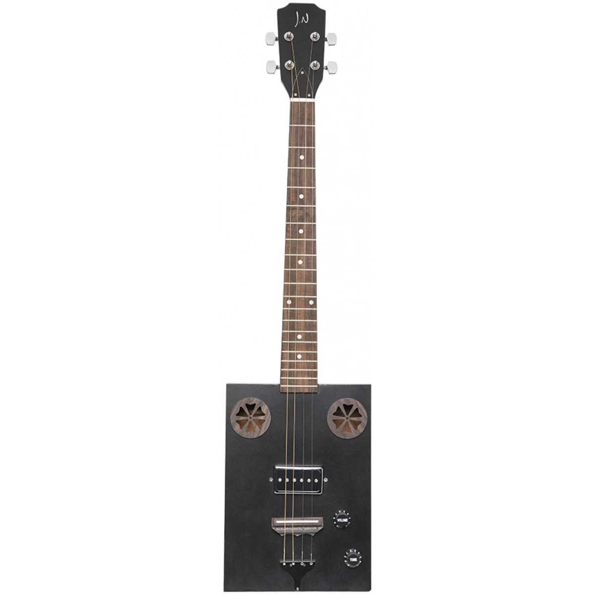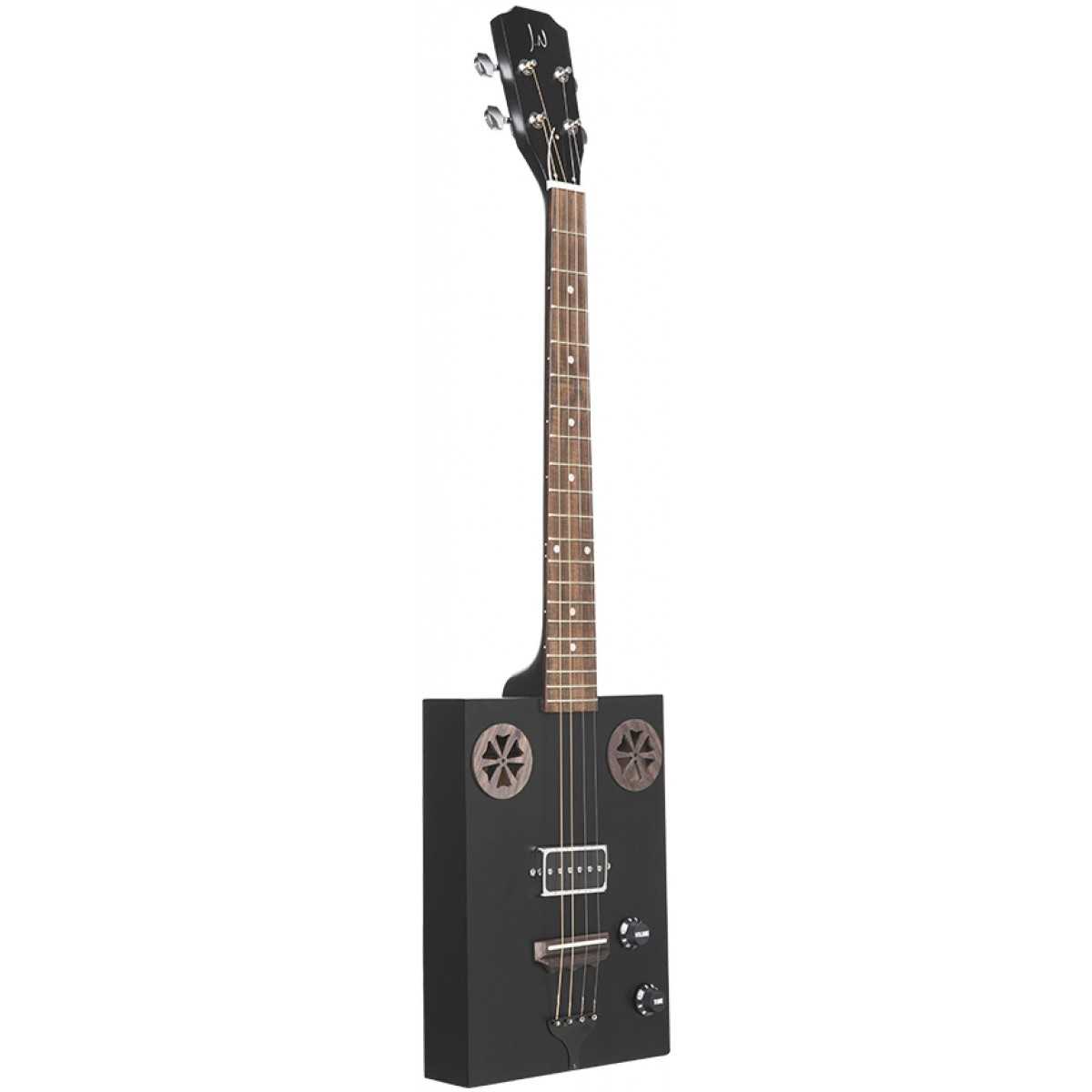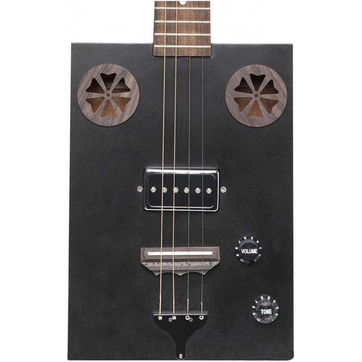Elektroakustická kytara typu Cigar Box. Vrchní deska sapele, spodní deska a luby sapele, krk mahagon s ocelovou výztuhou (truss rod), hmatník ovangkol s výložkou (ABS), kobylka ovangkol, sedlo kobylky a nultý pražec ABS, dva ozvučné otvory s ozdobným překrytím ze syntetického dřeva, niklovaná mechanika die-cast s chromovanými knoflíky, snímač P-90, 8.0K, 4.5H, ovládání tónu a hlasitosti, ladění D-G-H-E (jako čtyři nejvyšší struny šestistrunné kytary), alternativní ladění G-D-G-H. Barva černá matná (cask coal), otevřené póry. Dodáváno včetně nylonového pouzdra.: Vrchní deska: sapele