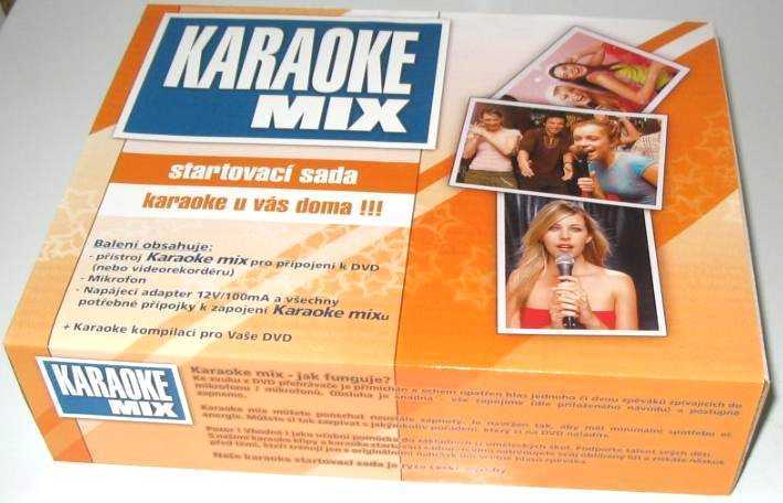 Karaoke mix se vstupem pro DVD (nebo videorekordér), dvěma vstupy pro mikrofon a výstupem pro TV