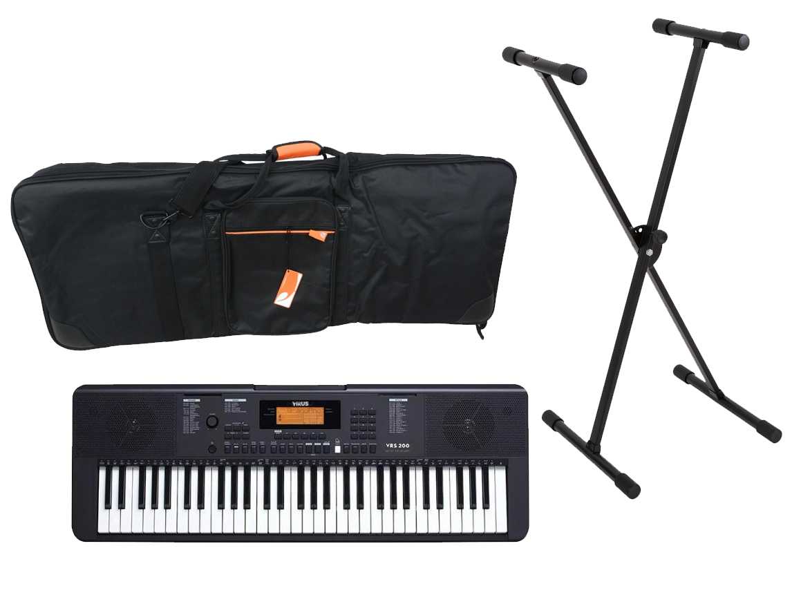 Virus VRS 200 je všestranný studentský digitální keyboard, který nabízí množství zvukových rejstříků, doprovodných stylů, skladeb k hraní i učení, možnost připojení externího audio zařízení nebo mikrofonu a to vše za velmi příznivou cenu. Vše co může začínající hráč potřebovat v jediném, snadno ovladatelném a lehce přenosném nástroji.