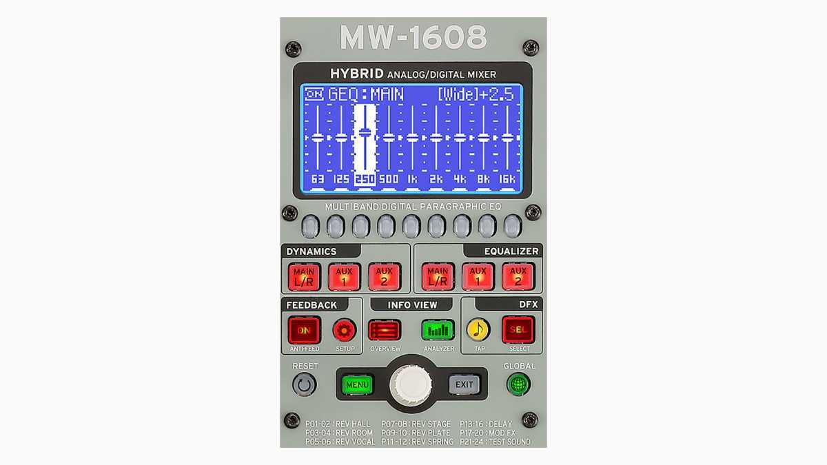 Digitální procesing a efekty mohou být frustrující, pokud jsou pohřbeny někde hluboko v menu. Řada individuálních tlačítek L / R, AUX 1 a AUX 2 pro ekvalizér a dynamiku usnadňuje mixáž. Limiter, Compressor, Noise Gate jsou účinné, aniž degradovaly zvuk nebo byly přehnané. Každý jejich parametr se dá kdykoliv nastavit, uložit a vyvolat. 31-pásmový spektrální analyzátor a náš super praktický 31/9 pásmový paragrafický ekvalizér vyřeší akustické problémy, které ostatní mixy nemají šanci zvládnout.