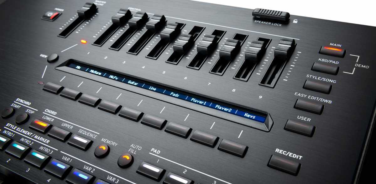 Pa5X je vybaven plně programovatelnou sekcí kontrolerů s 9 tlačítky a 9 slidery. Můžete mu přiřadit libovolnou funkci, od hlasitosti mixpultu po nastavení táhla, přes ztlumení mikrofonu a inverzní basy, až po příkazy rolování textu a další. Přidělená funkce se zobrazuje na pomocném proužkovém displeji, takže vždy víte, co máte pod palcem, i když jste na jiné stránce než na hlavním displeji.