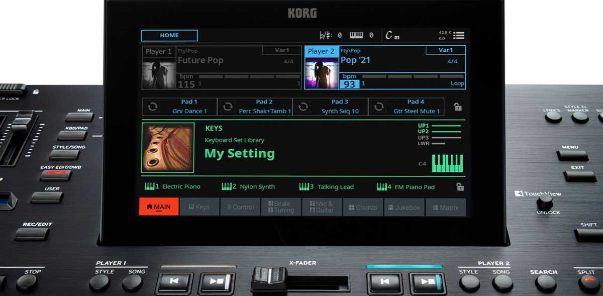 Pa5X může přehrávat dva styly, MIDI soubory nebo MP3 soubory současně a v libovolné kombinaci, což umožňují dva integrované přehrávače*. Tyto přehrávače lze míchat pomocí crossfaderu, nebo je lze použít k přehrávání jedné skladby, zatímco druhá vyčkává. Zvukový engine Pa5X přitom poskytuje dostatečný výkon, zpracování efektů a polyfonii, aby tyto přechody probíhaly hladce.