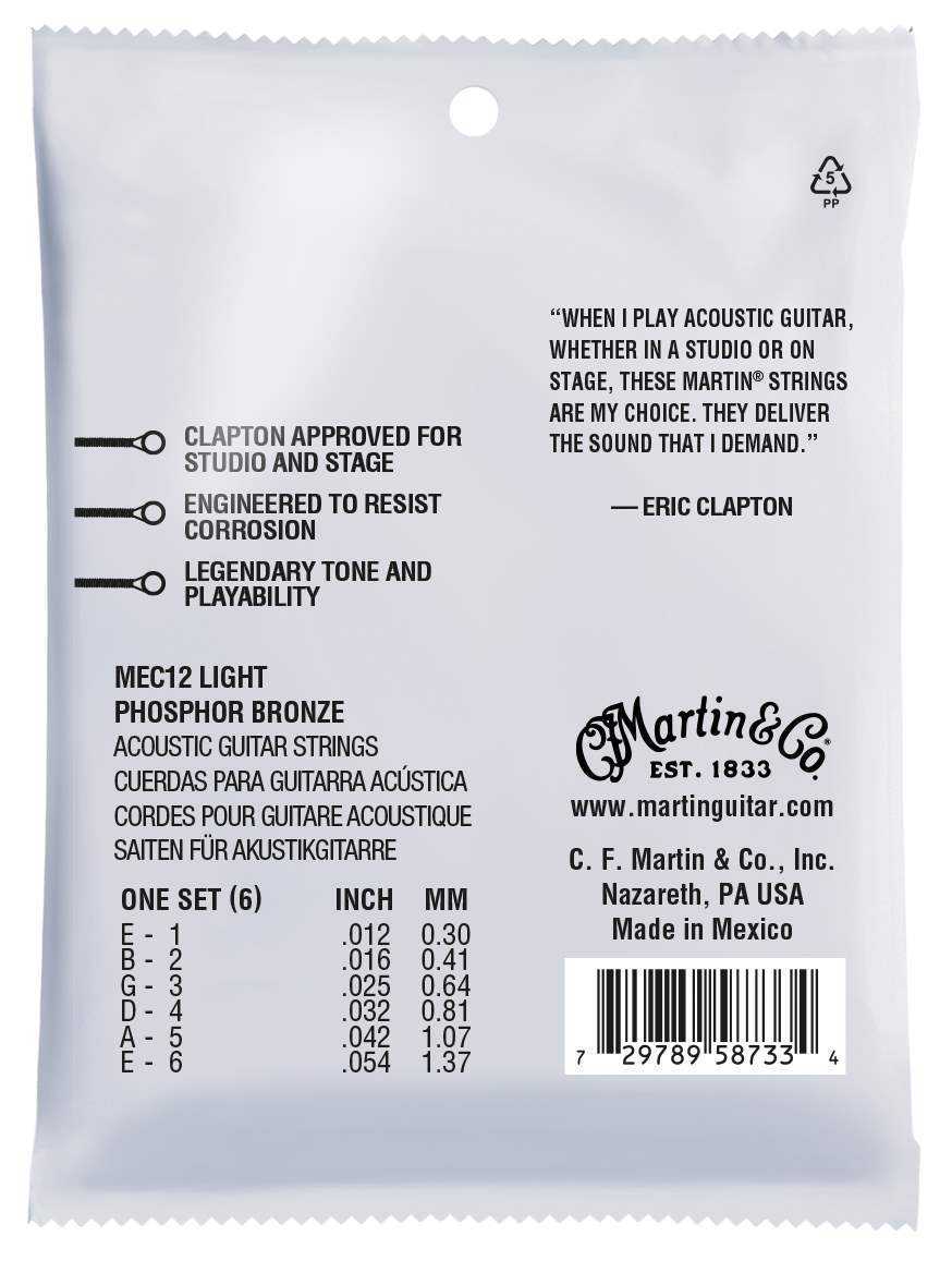 Signature struny pro akustickou kytaru Martin Clapton’s Choice jsou vyrobeny přesně podle požadavků Erica Claptona tak, aby podaly ten nejpřirozenější zvuk. Použito je vinutí z fosforového bronzu a jádro z pocínované oceli pro jasný, ale stále teplý velmi muzikální tón.