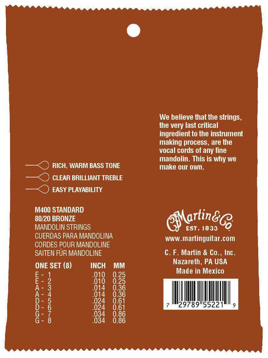 Struny pro mandolínu jsou vyroběny tak, aby nástroji pomohly produkovat bohatý, teplý tón s jasnými výškami a dlouhým sustainem. Použito je vinutí z bronzu a jádro z pocínované oceli.