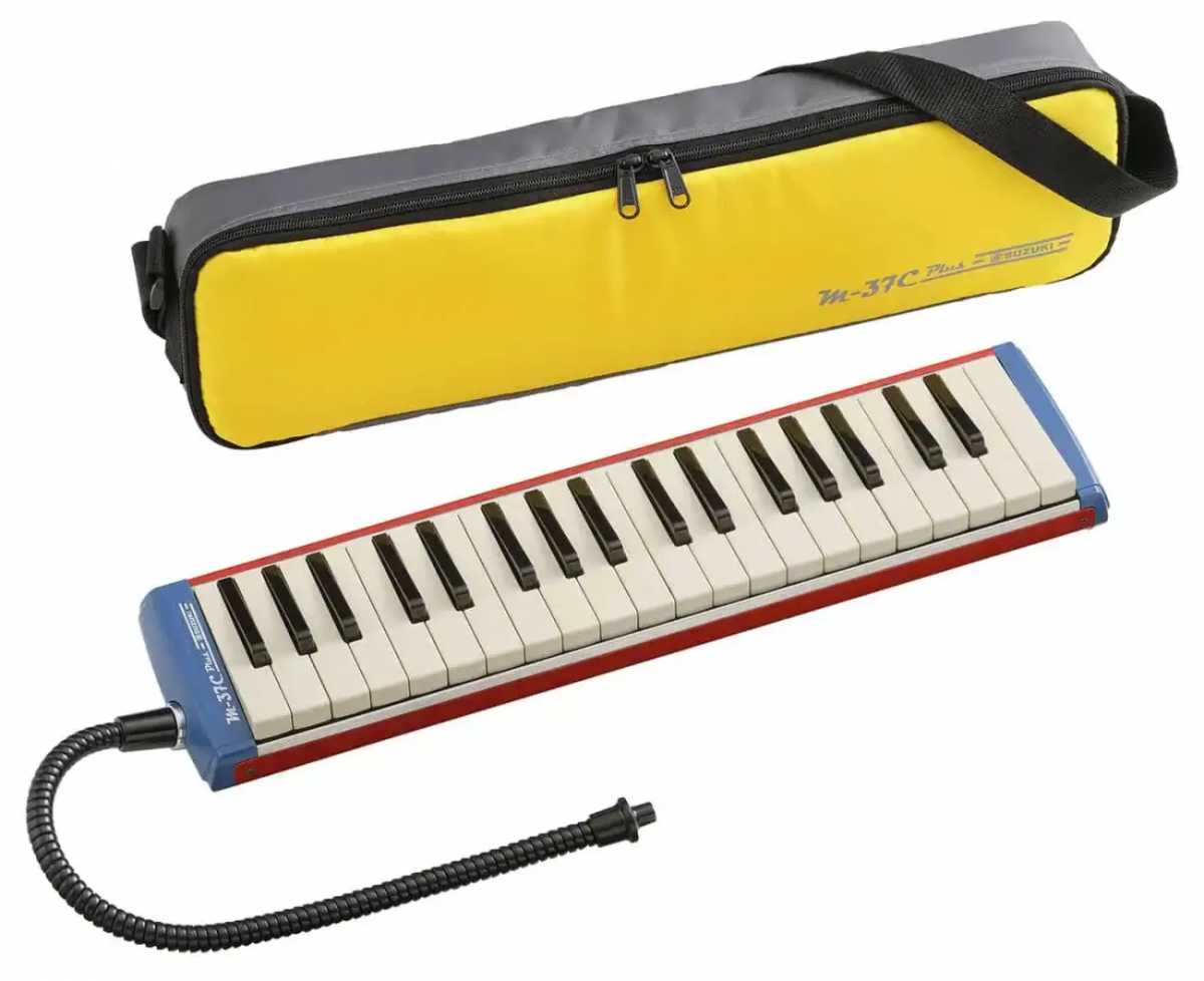 Suzuki M-37C Plus je kvalitní altový melodion, neboli klávesová harmonika. Nabízí překrásný červeno-modrý povrch v kombinaci se silnými fosforbronzovými plátky a je ideální volbou pro živé vystupování nebo do studia. Tělo je z hliníku s povrchovou úpravou vinylovým efektem, klapkou pro uvolnění vlhkosti a pohodlnou rukojetí. Nyní je nově dodáván s novým prodloužením náustku typu husí krk. Součástí je i MP-2200 Soft barevná vinylová taška a náustek MP-161 'Gooseneck'. Suzuki Melodiony jsou známé svojím precizním laděním a vysokou odolností. Nabízí 37 kláves a rozsah od f po f3.