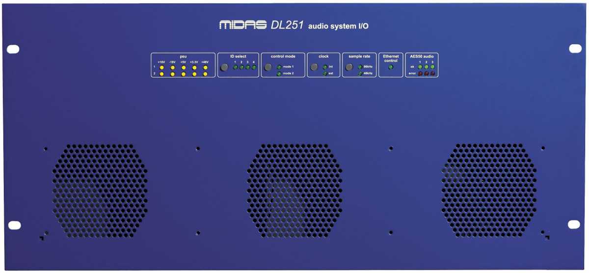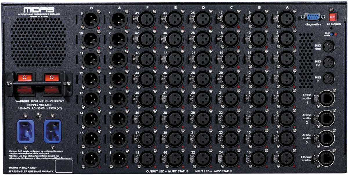 Stagebox se 48-mi mikrofonními předzesilovači MIDAS, 48 vstupů, 16 výstupů.