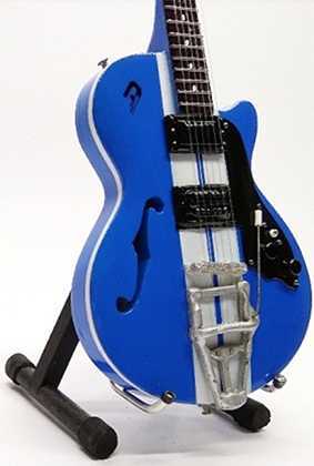 Exkluzivní miniatura kytary, vyrobená ze dřeva se všemi detaily nástroje. Krásné ruční detailní zpracování. Délka kytary cca 25 cm, šířka 7 - 9 cm. Včetně stojánku. V dárkové krabičce. Skvělý dárek na ozdobu pokoje nebo pracovního stolu pro zapáleného kytaristu. Model Eddie Vedder Pearl Jam Duesenberg Mike Campbell Signature.