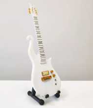 Exkluzivní miniatura kytary, vyrobená ze dřeva se všemi detaily nástroje. Krásné ruční detailní zpracování. Délka kytary cca 25 cm, šířka 7 - 9 cm. Včetně stojánku. V dárkové krabičce. Skvělý dárek na ozdobu pokoje nebo pracovního stolu pro zapáleného kytaristu. Model Prince Schecter Cloud White.