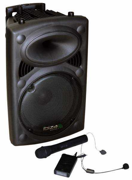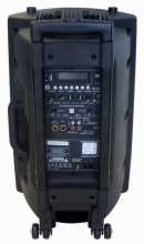 12" přenosný PA systém určený pro mobilní aplikace v terénu s 12V vestavěným akumulátorem. Obsahuje 1x ruční (863MHz) a 1x náhlavní (865MHz) bezdrátový UHF mikrofon s prioritou hlášení a vstupy pro dva kabelové mikrofony 1x LINE vstup a LINE mix výstup. Má vestavěný MP3 přehrávač s USB konektorem, slotem pro SD kartu, LCD displejem, dálkovým ovládáním, blueTooth a FM tunerem. Umožňuje přehrávání skladeb přes bluetooth například z mobilního telefonu. Také má 2-pásmové korekce a echo efekt. Systém má možnost napájení z vestavěného akumulátoru, z externí 12V baterie nebo ze sítě 230V/50Hz. Systém je vhodný např. pro cvičitelky aerobicu, konference, školení a všude tam, kde je potřeba reprodukovat hudbu a řeč. Soustava má vestavěnou výsuvnou rukojeť a kolečka pro snadnější transport. Balení obsahuje také ochranný textilní obal na reprosoustavu.
