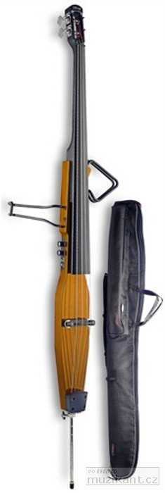 3/4 elektrický kontrabas. Tělo masiv javor, krk masiv javor, kobylka ebonizované tvrdé dřevo, nultý pražec černý plast, ergonomicky tvarované kovové podpěry, potažené měkkou pryží, výsuvný bodec, mechanika die-cast typu P-bass, ovládání hlasitosti a basů, indikátor slabé baterie, 1x vstup stereo mini jack 3,5 mm pro CD nebo MP3 přehrávač, 1x výstup mini jack 3,5 mm pro sluchátka, 1x výstup jack 6,35 mm. Součástí dodávky černé nylonové pouzdro. Barva medová.: Tělo: masiv javor