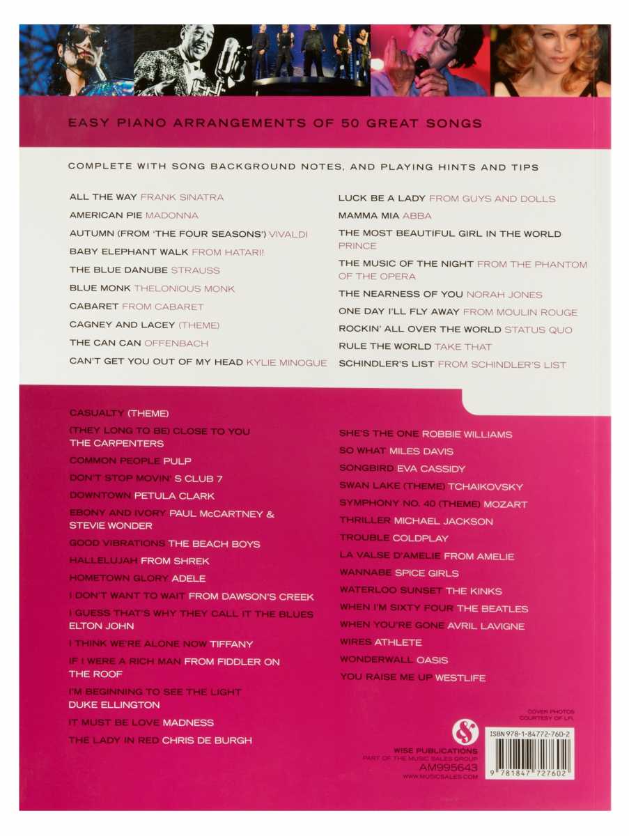 Knihy ze série Really Easy Piano jsou určené pro začínající klavíristy, kteří si chtějí zahrát populární skladby. Kromě notových záznamů zde naleznete i doporučení jak hrát. Tento díl obsahuje opravdu masově známé skladby.